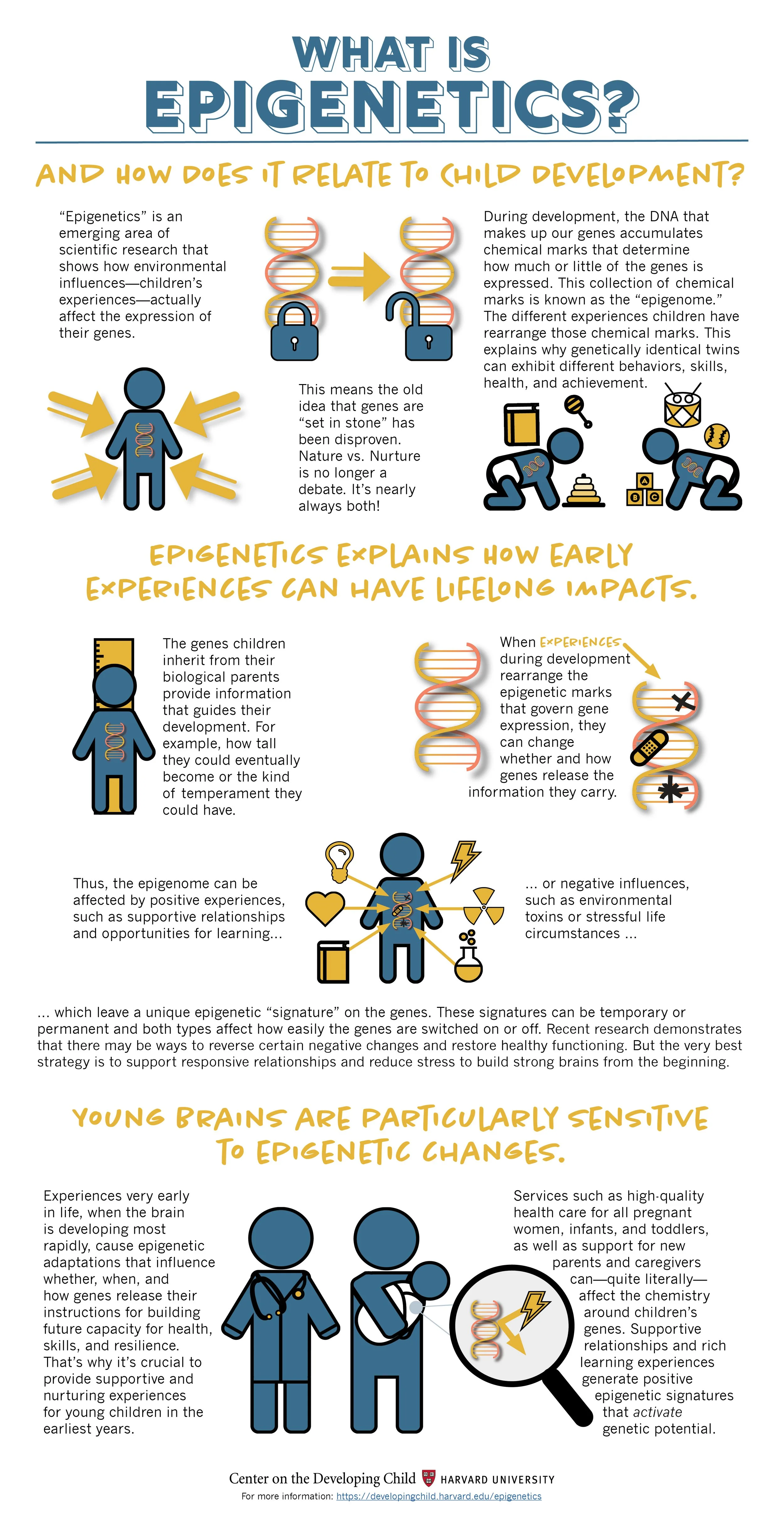 The process of epigenetics, where the readability, or expression, of genes, is modified without changing the DNA code itself. Tiny chemical tags are added to or removed from our DNA in response to changes in the environment in which we are living. These tags turn genes on or off, offering a way of adapting to changing conditions without inflicting a more permanent shift in our genomes.